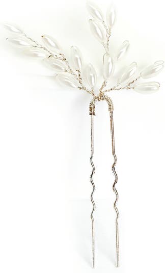 Perfect tucked into a chignon or partial updo, these dainty pins offer elegant shine with sterling silver wires enriched by lustrous imitation pearl beads.