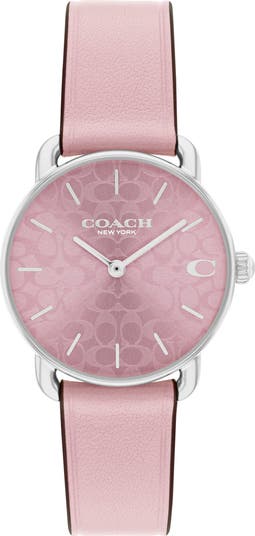 Clean lines and a polished finish enhance the minimalist aesthetic of this timepiece featuring a rose-pink sunray dial with an iconic 'C' at the three-hour mark. A matching leather completes the look.