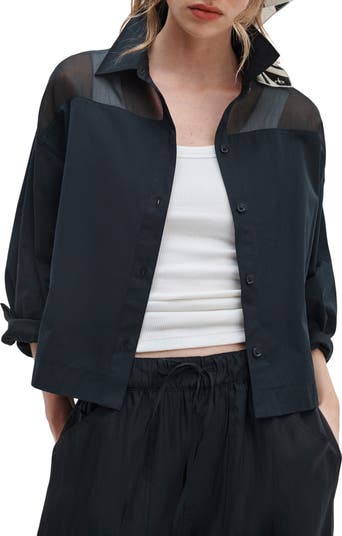 Sheer fabric details further the light and airy aesthetic of this button-up cut from a swingy, cropped fit that makes the most of the smooth, crisp cotton.