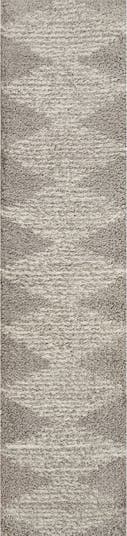 Inspired by Moroccan rugs, our modern striped rug has a soft, low shag pile. The geometric pattern is woven in gray on an ivory background; our diamond stripe design has mid-century flair. Add graphic punch to your living room, bedroom, or reading nook with this easy-care rug.