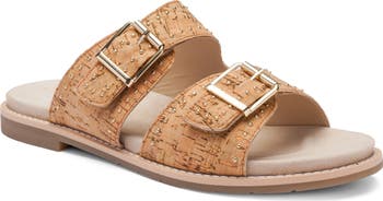 Adjustable studded straps offer a perfect fit in a laid-back slide set atop a supple and padded insole and a special foam insert hidden under the ball of the foot that creates an indescribably comfortable walking experience.
