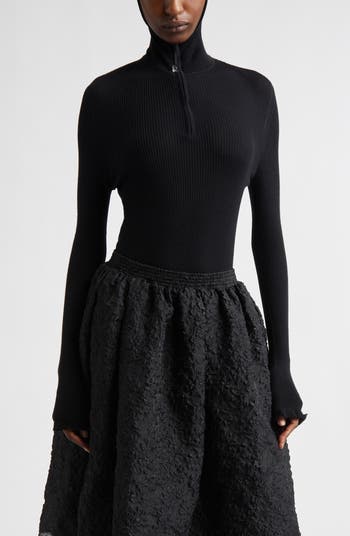 Elma Hooded Rib Merino Wool Half Zip Sweater