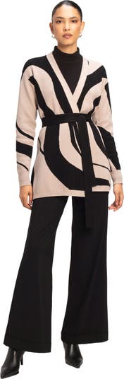 A versatile wardrobe essential for any time of day. The Elma Cardigan features a bold abstract pattern and can be worn open for a relaxed look or fastened with the detachable belt for a more tailored silhouette. Dress it up with tights for an elegant evening or pair it with trousers and jeans for an everyday look.