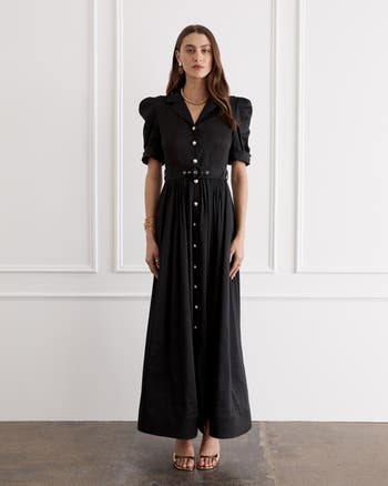 The Eloise Dress embodies a modern twist on a classic silhouette. Woven from French Flax Linen and the decadent fluidity of Mulberry Silk, allowing it to hold both structure and softness. A bold cascading skirt is met with the delicate detailing of custom luminescent pearl buttons - combining both function and flare. International Size Conversion: XS = US 2 S = US 4 M = US 6 L = US 8 XL = US 10