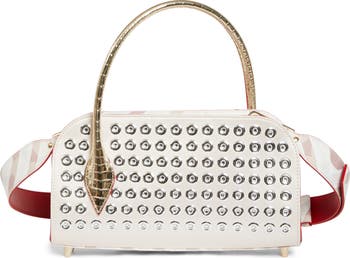 The fabric designed by Australian artist Otis Hope Carey pays homage to Gaagal, the spirit of the ocean, with this baguette bag detailed with crystal-centered grommets. Louboutin-red accents and lining bring signature touches to the look.