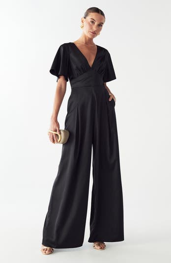 The ELOISE JUMPSUIT by WILLA is a striking wide-leg design that embodies modern sophistication. Its elegant deep V neckline and flutter sleeves create a refined silhouette that transitions seamlessly from day to evening
