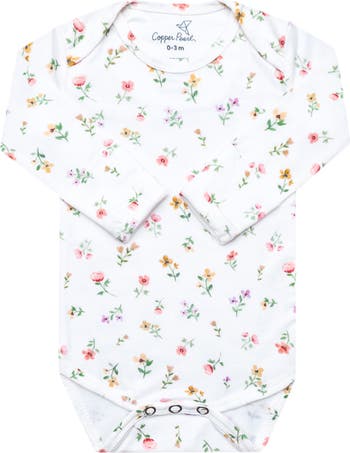 Baby will be blooming with comfort in this long-sleeve bodysuit cut from buttery-soft fabric.