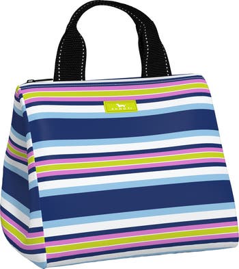 LUNCH FOR ONE AT THE PLAZA? Keep your food as fresh as your disposition with this handbag-inspired, zippered lunch box that opens wide to easily hold square food containers. The outside pocket is perfect for packing napkins, utensils, or little condiment packets.