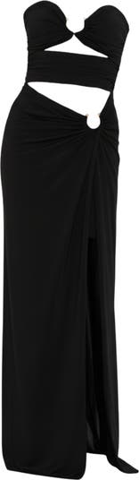 The Eloise Slit Dress commands attention with its striking design elements and refined elegance. Featuring a sheer window detail across the chest and expertly shirred structure, this piece balances modern sophistication with timeless appeal. Model wears size xs. Made in Europe.