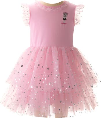 Introducing the Eloise Sparkle Tutu Dress - a dreamy outfit for every little princess and ballerina! This stunning dress features a dazzling sparkle tulle skirt with an attached jersey cotton bodice for ultimate comfort and style. Beautifully decorated with a hand-embroidered Eloise on the chest and sweet details on the sleeves and neckline, it’s the perfect choice for birthdays, playtime, or special occasions, adding a touch of magic to your little one’s wardrobe.