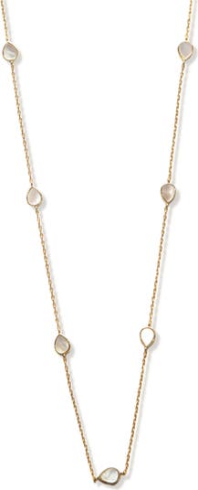 Glowing mother-of-pearl drops are stationed around a delicate chain to create sophisticated shine on a sterling silver necklace plated in 18-karat gold.