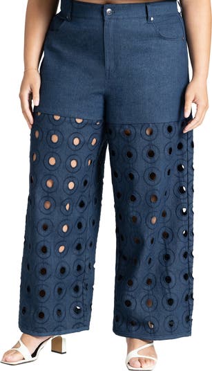 100% Cotton Relaxed fit Front fly zipper with button 5 pocket design High rise Full length inseam Inseam = 29"L Contour waistband with belt loops Back yoke Wide leg Non-stretch denim Wash before wearing. Machine wash cold gentle cycle with like colors. Only non-chlorine bleach when needed. Tumble dry low. Cool iron as needed.