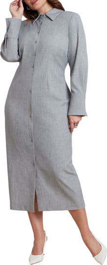 Bring tailored ease to your day-to-night look with this collared midi dress. A button-front placket and sleek fit offer timeless, desk-to-dinner versatility.