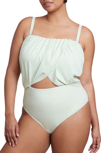Turn heads in this strapless-optional one-piece swimsuit, styled with a draped bodice & cutout for modern impact. Removable straps and soft-stretch fabric let you wear it your way.
