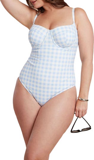 Channel retro-cool charm with this gingham one-piece designed for confident coverage. The adjustable straps and smooth fabric keep the look fresh, wearable, and chic.