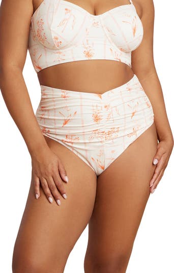 Elevate your swim capsule with this ruched high-waist bikini bottom. Soft gathering and stretch fabric deliver confident coverage with a modern edge.