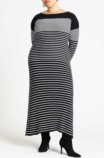 Move stylishly from day to night in this lively striped maxi shaped by allover ribbing.