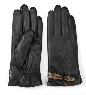 A timeless classic with a distinctive twist, this black leather glove style blends understated elegance with vintage charm. The sleek silhouette of Elora leather gloves is elevated by refined leopard print detailing at the wrist — a subtle yet striking accent that adds character. Crafted from smooth genuine leather and lined with a soft, warming layer, these gloves offer both sophistication and comfort for everyday wear. Designed to complement cold-weather looks effortlessly, they bring polish to everything from tailored coats to casual ensembles.