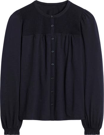 Elsa Smocked Yoke Knit Button-Up Shirt