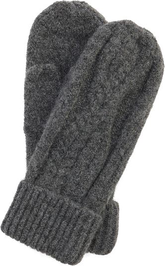 A classic cable-stitch design defines these supersoft, stretchy mittens with a ribbed turnback cuff for an ideal fit.