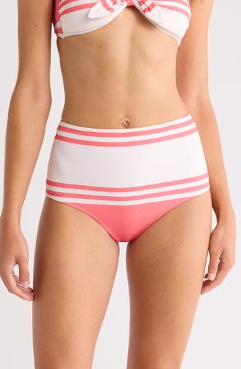 The epitome of beach-chic: these high-waisted bikini bottoms feature a flirty back keyhole with an adjustable tie for a perfect fit and a touch of playful elegance.