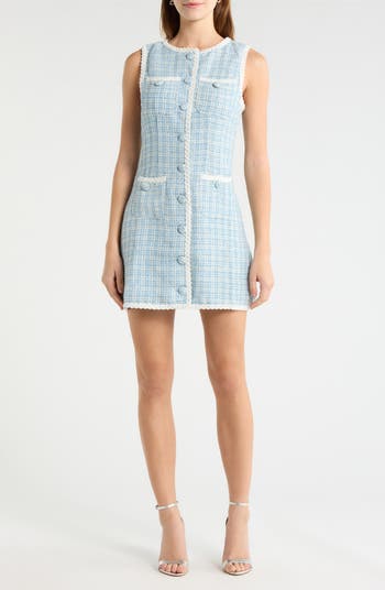 Tweed fabrication gives a sophisticated look and feel to a minidress that's a perfect go-to for elevated outings and special occasions.