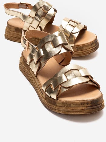 A light and refined sandal designed for summer dressing with woven strap detailing