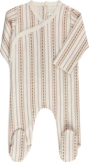 Soft, delicate tulip stripes in the sweetest vintage tones, the Linear Tulip Collection is made especially for baby. Thoughtfully designed in coordinating pieces, each style is crafted with a gentle stretch for the coziest, cuddliest fit. This kimono-style baby footie (Stretchy) features the signature linear tulip stripe for a sweet and timeless look.