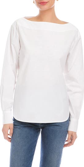 Made from crisp cotton poplin for a fresh, structured feel, this modern top features a sleek boat neckline and a curved hem to relax the silhouette.