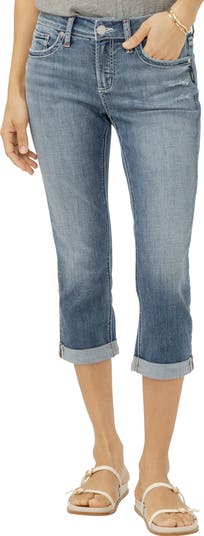 Silver Jeans Co. Elyse Curvy Distressed Mid Rise Capri Jeans, Main, color, Saturday Morning
