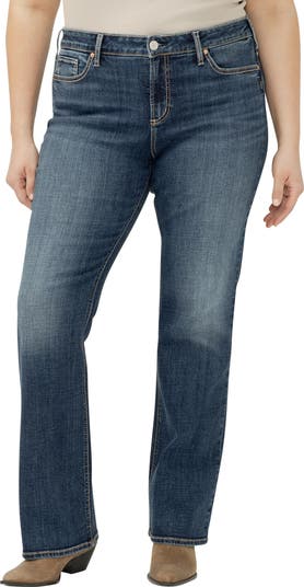 Designed for curvy figures, these stretchy, full-length bootcut jeans offer a comfy fit with an eased mid-rise waistband and extra room in the hip and thigh.
