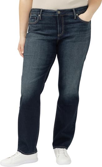 Designed for curvy figures, these stretchy, full-length bootcut jeans offer a comfy fit with an eased mid-rise waistband and extra room in the hip and thigh.