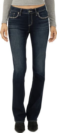 Perfect your casual-cool game in these mid-rise jeans made with a little extra room in the hip and thigh to hug your curves. An eased waistband keeps the midsection comfy, preventing digging even when sitting.