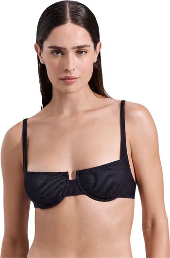 The Emanuelle Textured Underwire Bikini Top brings bold, modern vibes with its ribbed fabric and structured underwire. Adjustable straps and a back bikini hook closure let you customize your fit, while front and back lining keeps you supported and confident. Pairs perfectly with the Emanuelle Bikini Bottoms for a chic, head-turning set. Bottoms sold separately.