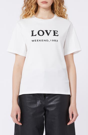 Beads and tiny paillettes call attention to the simple but important messaging emblazoning this T-shirt cut for a gently eased fit from soft cotton jersey.