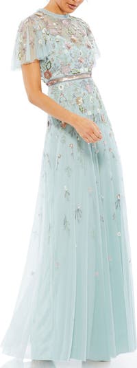 Mac Duggal Embellished High Neck Butterfly Sleeve Gown, Main, color, Mint