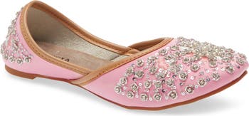 Shimmering sequins, crystals and faux pearls punctuate this supple, handcrafted flat that's adds exquisite flair to your evening-out looks.