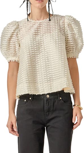 Tonal texture styles up a darling top set with pretty puff sleeves.