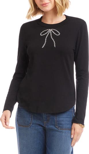 Embellished Rhinestone Bow Long Sleeve T-Shirt