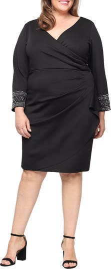 Jewel-embellished cuffs and delicate side ruching add stunning elegance to an occasion-ready dress made from stretch-enhanced crepe for comfortable wear.