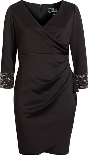 Jewel-embellished cuffs and delicate side ruching add stunning elegance to an occasion-ready dress made from stretch-enhanced crepe for comfortable wear.