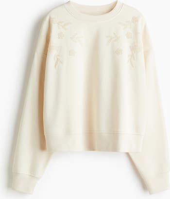 Oversized top in sweatshirt fabric with a soft brushed inside, embellished with sequins and small plastic beads. Round, rib-trimmed neckline, dropped shoulders and long sleeves. Ribbing at the cuffs and hem.
