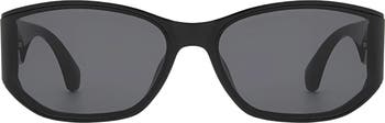 Angled oval frames and logo-marked temples distinguish everyday sunglasses crafted from polycarbonate.