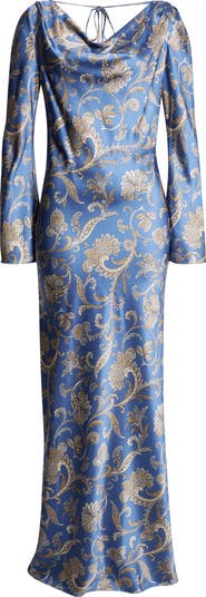 Ember Long Sleeve Paisley Silk Blend Maxi Dress