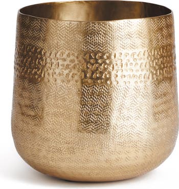 Emberlynn is formed from a thin sheet of metal, trimmed and textured to perfection. This beautiful Cachepot is sure to suit your most prized houseplant- or simply beautiful as is.