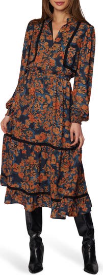 Traced in lacy accents and covered in autumnal blooms, this tiered dress will be an instant favorite. A pair of handy pockets perfects the look.