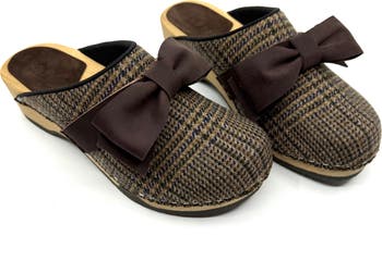 A lavish bow crowns this textured houndstooth clog finished with breathable lining and grounded by a cushioned insole for cozy comfort