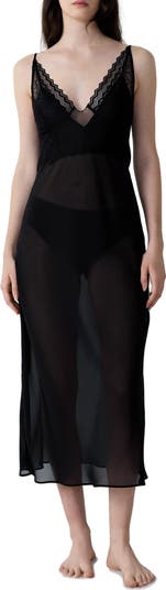 Embleme Nuisette Lace Trim Mesh Nightgown