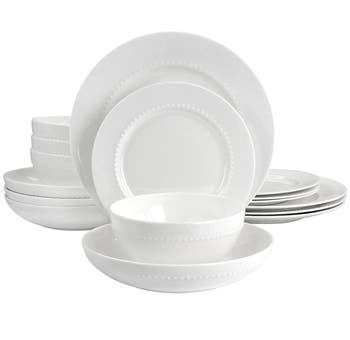 Embossed Bone China 16 Piece Double Bowl Dinnerware Set