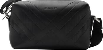 A crossbody bag in calf leather, embossed with a seasonal check and lined in check canvas. The design is finished with B-cut zip pulls.||Adjustable webbing strap|Two-way zip closure|Hand-painted edges|Brushed metal hardware|Check canvas lining|Comes with a dust bag